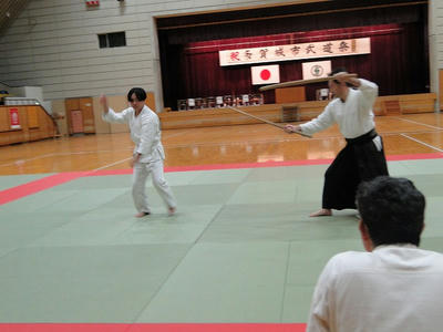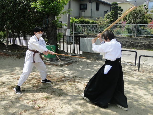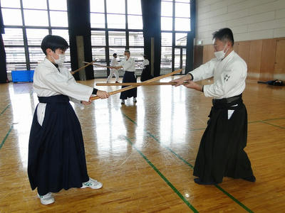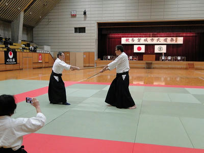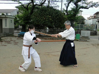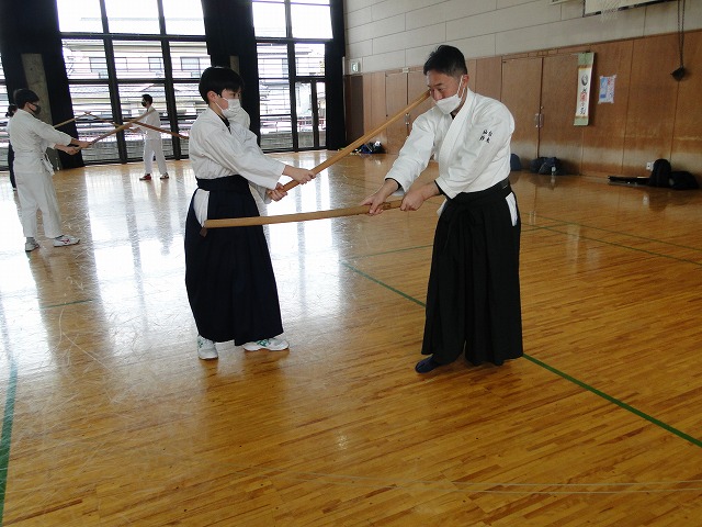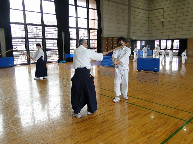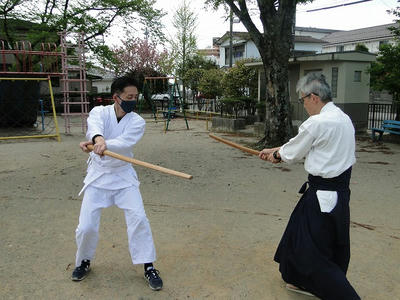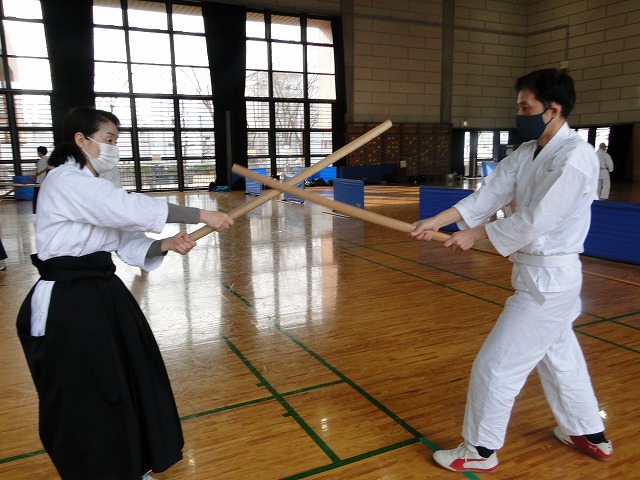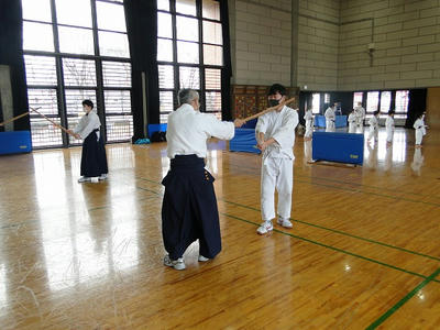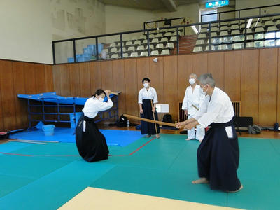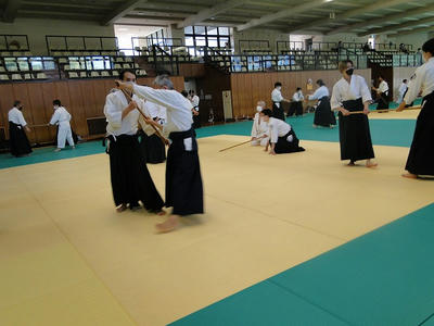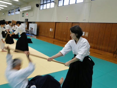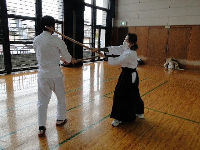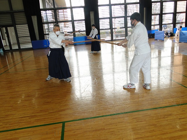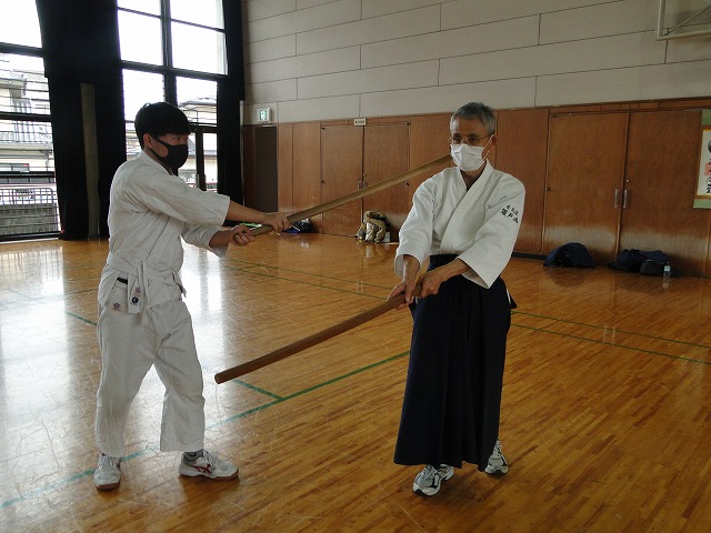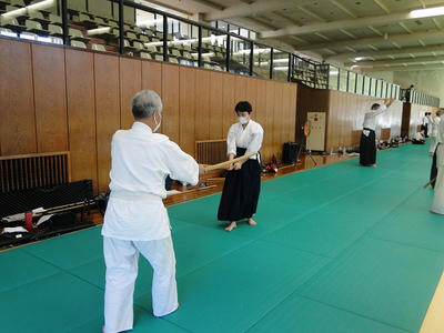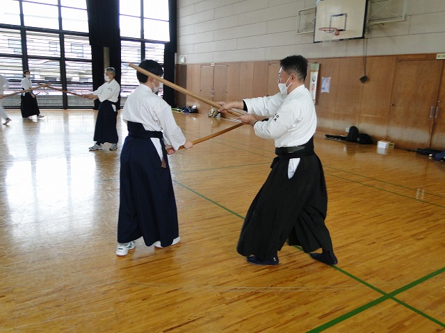 多賀城合気道道場は、(1)剣と杖の素振り(2)剣の基本操作と応用